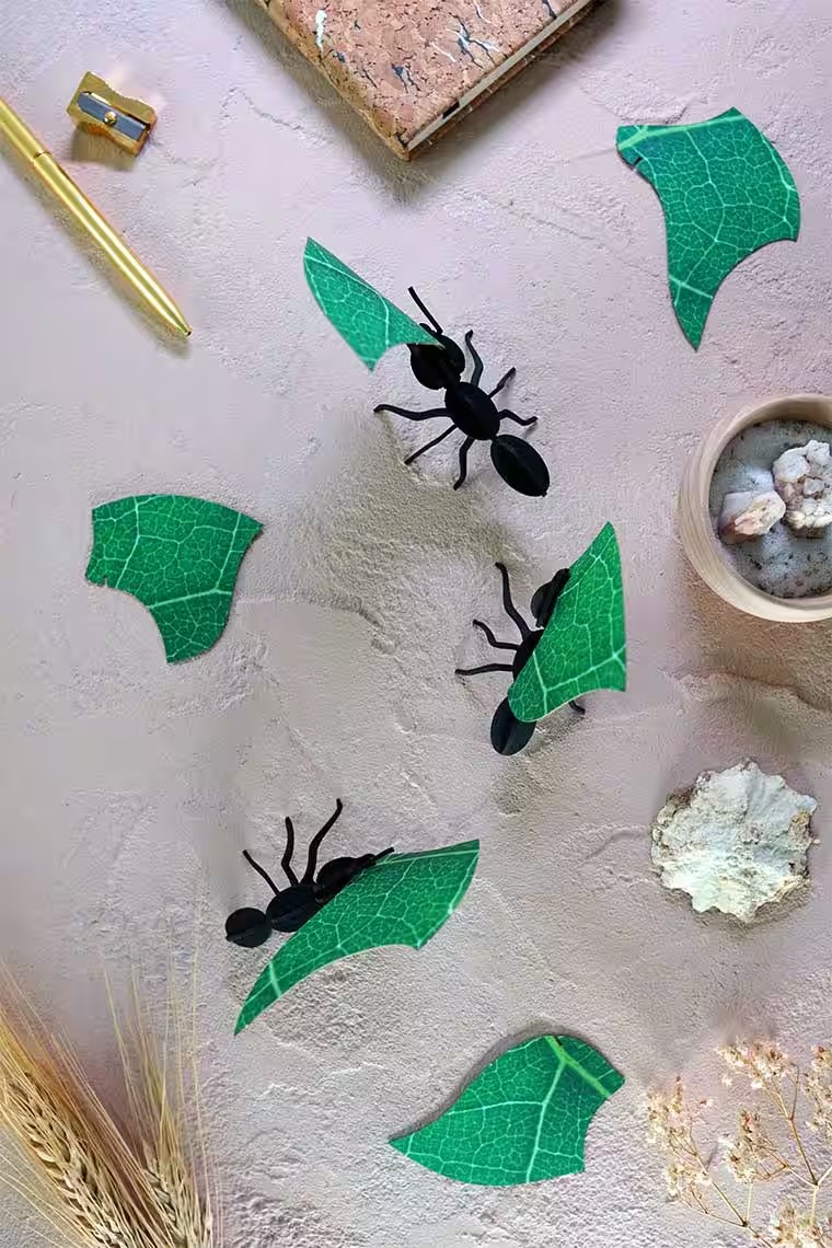 Bauen Sie drei tolle Blattschneiderameisen zusammen, die Papierblätter tragen, ohne Klebstoff oder Werkzeug.