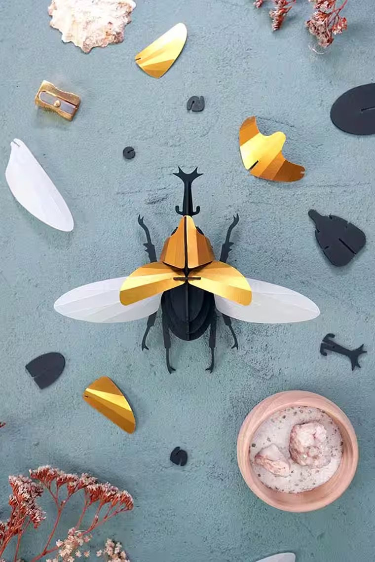 Mit diesem Kreativset können Sie ein realistisches und dekoratives 3D-Insekt bauen und dabei die Natur respektieren. Eine einfache und originelle DIY-Aktivität.