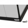 Die Glasstruktur ermöglicht eine ausgezeichnete Sicht, während das obere Gitter eine gute Belüftung gewährleistet. Dank seiner Dichtheit kann es auch mit feuchten Substraten oder in bioaktiven Installationen verwendet werden.