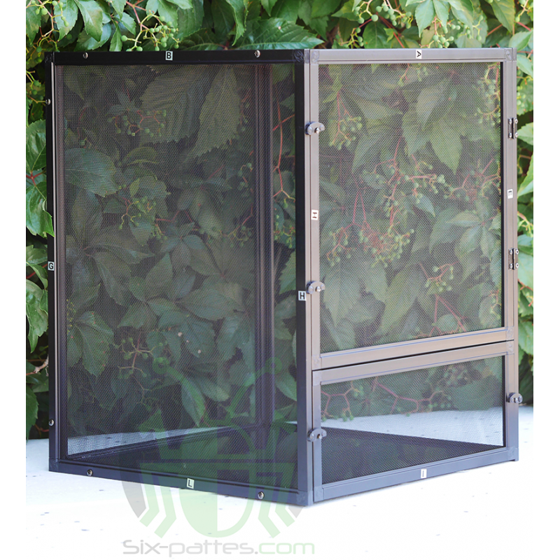 Korrosionsbeständiges, schwarz eloxiertes Aluminiumnetz-Terrarium. Es ist in mehreren Größen erhältlich.
