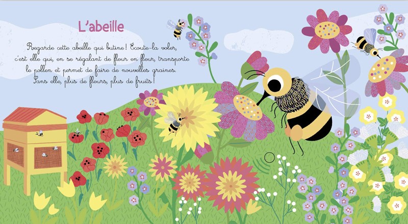 It's spring! Listen to the little creatures. Developed in partnership with the Office for Insects and their Environment, this book offers to listen, thanks to sound chips: the bee, the cicada, the hawkmoth, the fly, the cricket and the dung beetle. A lovely moment of nature, ecology and calm.