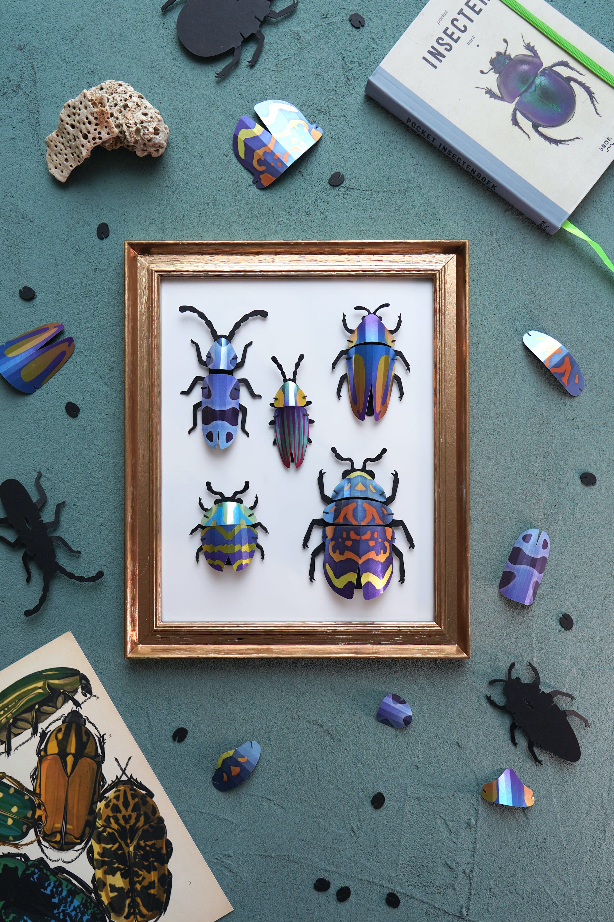 Create and display your own paper insect collection, without glue or tools!