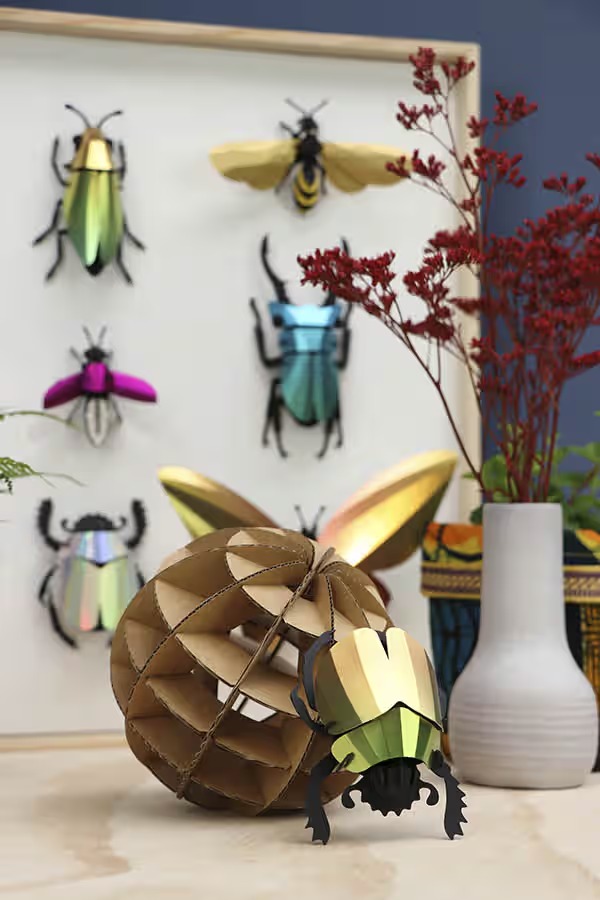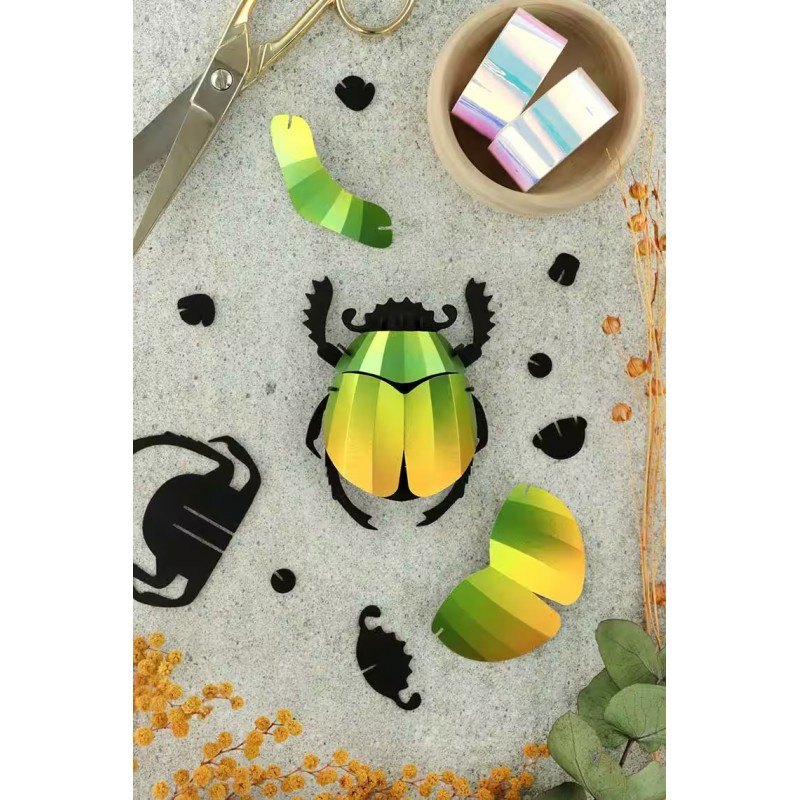 Assemble a sophisticated 3D paper beetle with a metallic finish, without the need for glue or tools. An elegant creative kit, perfect for adding a natural and artistic touch to your interior decoration.