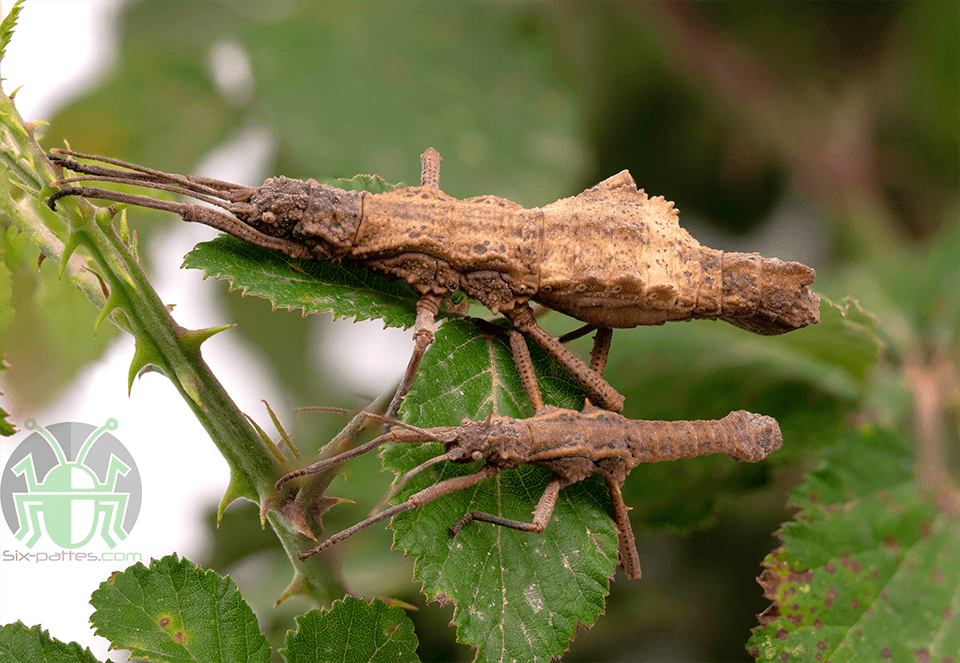 This species mainly uses camouflage to defend itself. But when that is not enough, it uses (especially young stick insects) thanatosis : it simulates death to escape its predators.