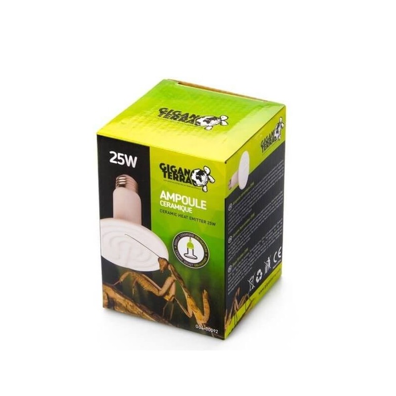 The ceramic lamp allows you to obtain a room temperature without emitting light, which does not affect the day/night cycle. It is imperative to use a thermostat to regulate the temperature. To avoid any risk of burns, make sure that your pet cannot reach the lamp.