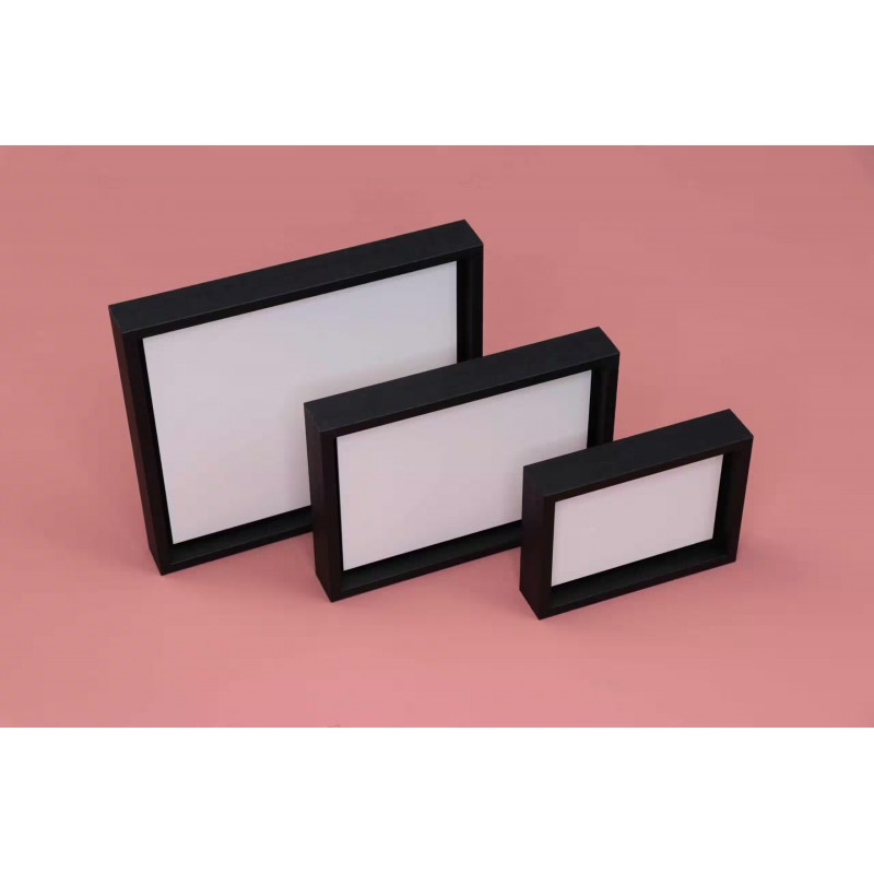 Marco de madera negro sin cristal.Con parte trasera de cartón blanco, ideal para dar un efecto “luminoso” a tu insecto.