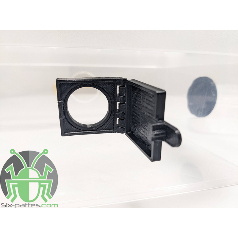 Facilite la alimentación de sus insectos y pequeños animales al tiempo que evita la intrusión de moscas de la fruta y otros parásitos con esta trampilla de alimentación anti-moscas de la fruta .