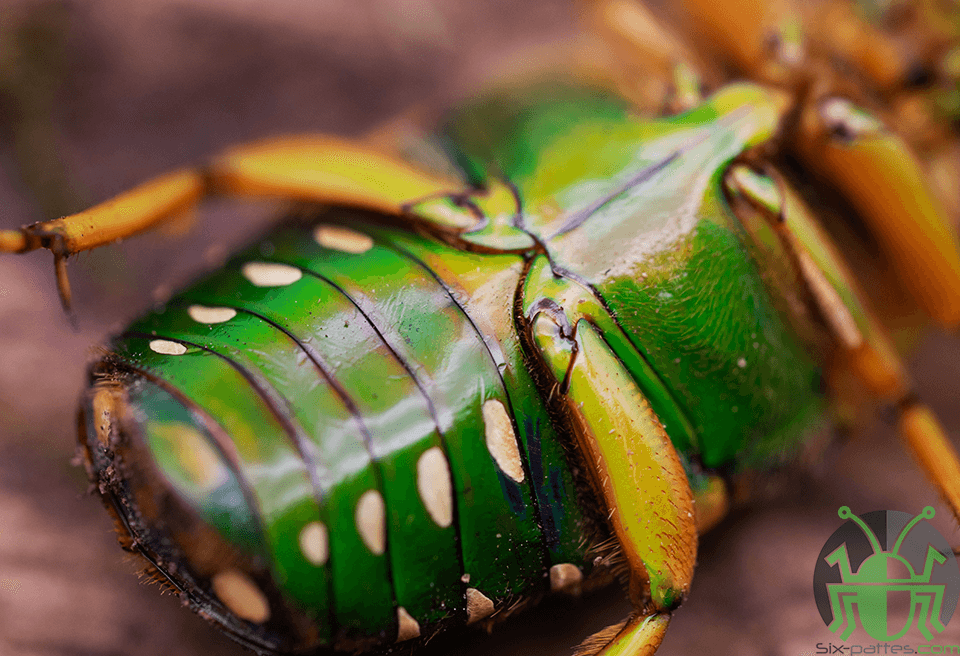 Le sol ne doit pas être totalement plat car les coléoptères qui tombent sur le dos meurent rapidement en ne pouvant plus se retourner . Il est donc très important de meubler avec des écorces , pierres ou autres et de ne pas aplatir le substrat .