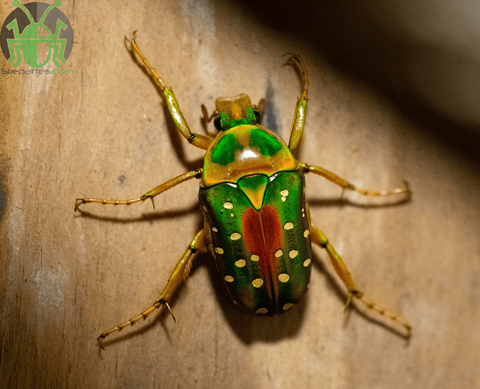 Stephanorrhina guttata, aussi appelée Cétoine mouchetée, est une belle cétoine d’Afrique tropicale, de couleur vert métallique, avec des taches blanches sur les élytres. Les reflets varient selon les individus ; les ailes membraneuses peuvent être bleutées. La suture entre les élytres est souvent orange, de largeur variable, et le scutellum est partiellement rouge ou vert. La taille varie de 25 à 30 mm . On la retrouve notamment du Sénégal jusqu’à la République démocratique du Congo, en passant par la Côte d’Ivoire, le Ghana, le Togo, le Cameroun