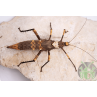 Il maschio è più piccolo e misura circa 10 cm. Il suo colore è più o meno marrone scuro e i colori sono meno variabili da un individuo all'altro. Presenta numerose spine più o meno verdi; la disposizione delle spine sul mesonoto dei maschi è particolarmente specifica della specie. Anche il maschio di Haaniella grayii presenta una macchia biancastra sulle ali.
