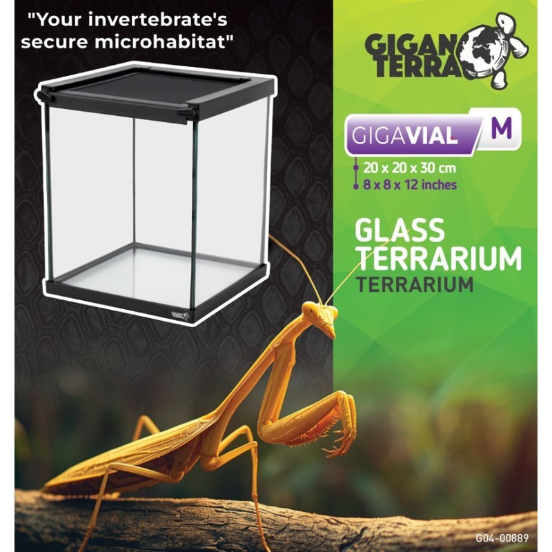 Il terrario GIGAVIAL M è un modello compatto progettato per la cura e l'osservazione di invertebrati e piccoli animali esotici. La sua progettazione verticale offre maggior spazio in altezza, rendendolo particolarmente adatto per le specie che amano arrampicarsi o posarsi.
